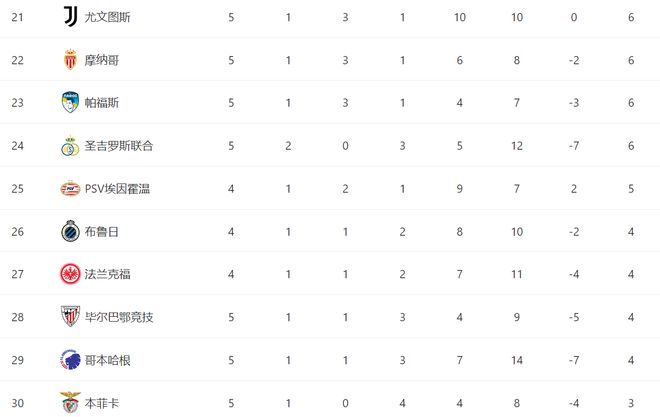 至此,帕福斯开局5轮取得1胜3平1负的战绩,积6分升至积分榜第23位,正好处于附加赛区,比本菲卡、阿贾克斯两支昔日冠军的排名还高。