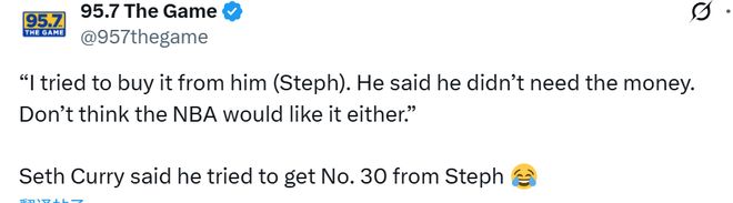 塞斯-库里表示在过去16年里,自己可能观看了勇士队95%的比赛。他还在采访环节开玩笑说,曾试图从斯蒂芬-库里那里买下30号球衣:“我试着想买下这个号码,结果他说自己不缺钱。而且我觉得NBA也不会同意这种做法。”