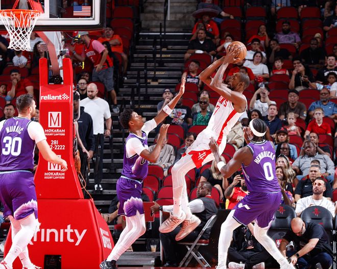 要知道这场比赛杜兰特开场一度是4中1,最终是10中7,这位37岁的老将依旧是联盟最顶级的得分手,真实命中率高达82%,正负值+5,杜兰特这个首秀我觉得至少可以打90分。火箭一直在与KD谈提前续约,看到杜兰特这样的竞技状态后一切都是顺理成章的。